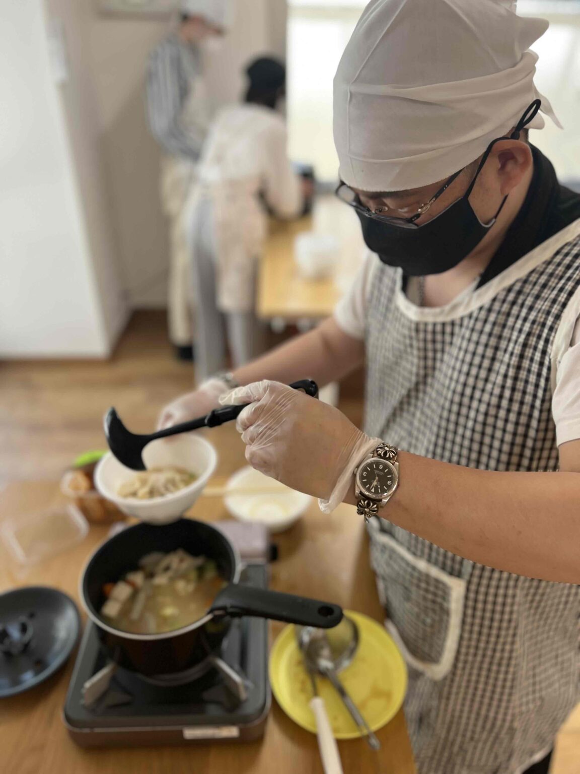 初回の豚汁とかぶるようですが、実は違っていて、前はまとめて作っていたのですが、今回は1人1腕ずつ自分で自分の分を作る事になりました!